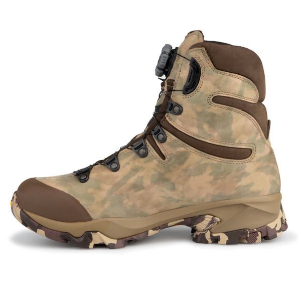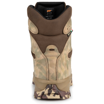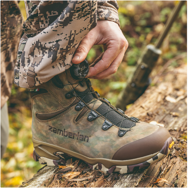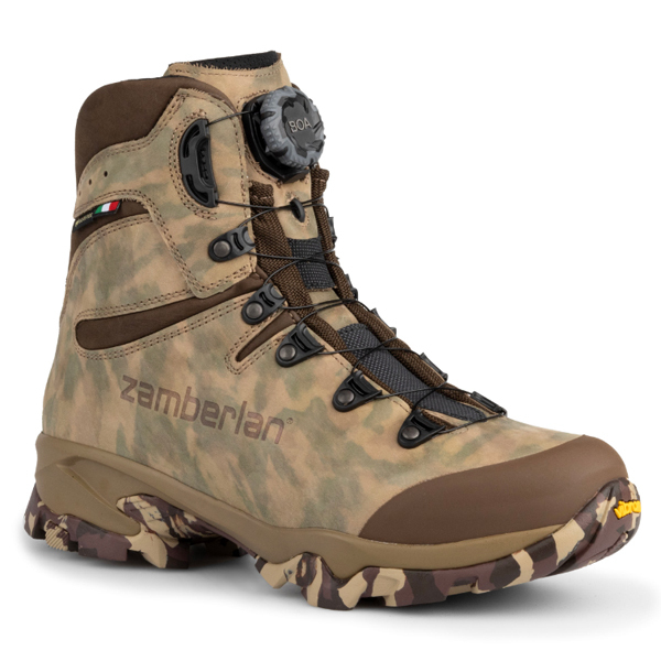 ▪ Cholewka zawiera najnowszą konstrukcję ze skóry Zamberlan i unikalną mieszankę kamuflażu. która podkreśla cały sprzęt myśliwski od stóp do głów.